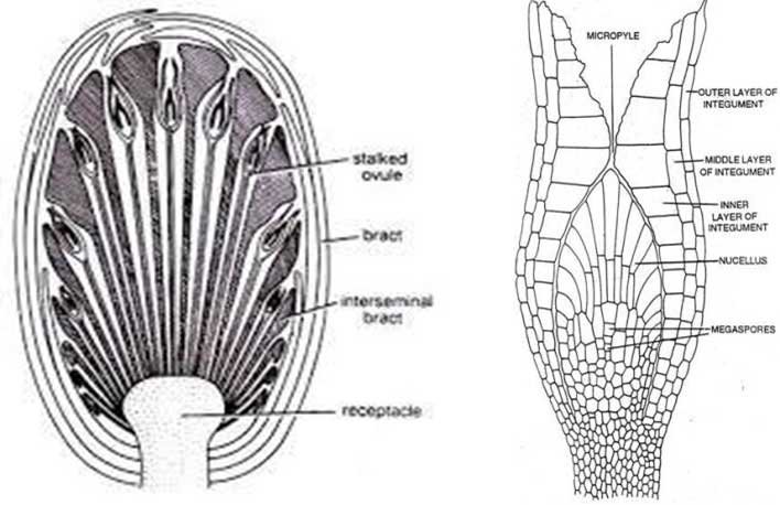 Ø The ovular integument has three distinct layers, similar to Cycas.