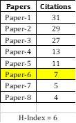 Ø This researcher has an h-index of 6, because six or more articles received six or more citations.