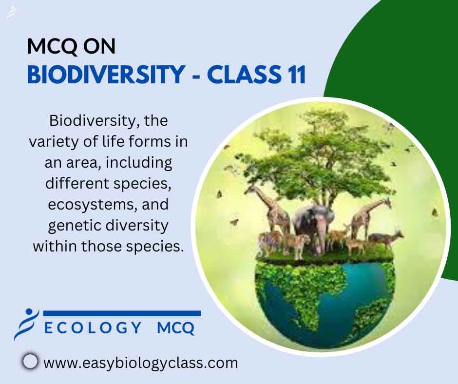 Biodiversity refers to the variety and variability of life forms present in a particular ecosystem or on Earth as a whole, encompassing diverse species of plants, animals, microorganisms, their genetic differences, and the complex ecosystems they inhabit. This MCQ on Biodiversity Class 11 will help you to understand the basic concepts of biological diversity in higher secondary level.