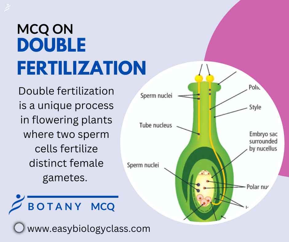 Double fertilization is a unique process in flowering plants where two sperm cells fertilize distinct female gametes. One sperm fertilizes an egg to form a zygote, while the other combines with polar nuclei to create endosperm, providing nourishment for the developing embryo. This is an MCQ on Double Fertilization and its Significance in plants.