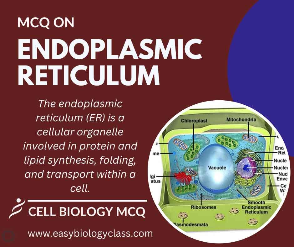 The endoplasmic reticulum (ER) is a cellular organelle involved in the synthesis, folding, and transport of proteins and lipids. It consists of a network of membranes within the cell, with rough ER studded with ribosomes for protein synthesis and smooth ER involved in lipid metabolism and detoxification. This is an MCQ on Endoplasmic Reticulum Structure and Functions.