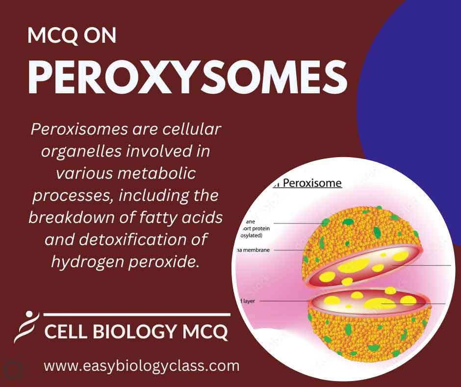 Peroxisomes are small, membrane-bound organelles found in eukaryotic cells. They are involved in various metabolic processes, including the breakdown of fatty acids and the detoxification of harmful substances. Peroxisomes contain enzymes that facilitate these reactions, contributing to cellular homeostasis. This is an MCQ on Peroxisomes Structure and Functions.