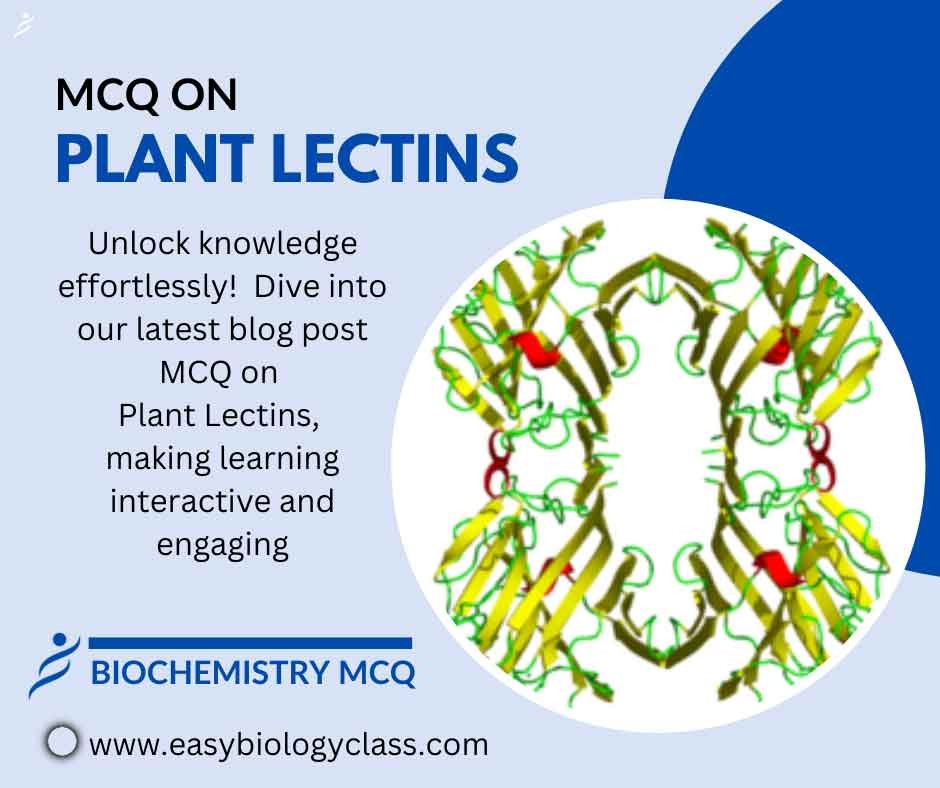 Lectins are proteins found in plants, animals, and microorganisms that bind specifically to carbohydrates. They play roles in cell recognition, immune response modulation, and various biological processes by interacting with sugars on cell surfaces or glycoconjugates. This is an MCQ on Lectins from Plants and its Applications.