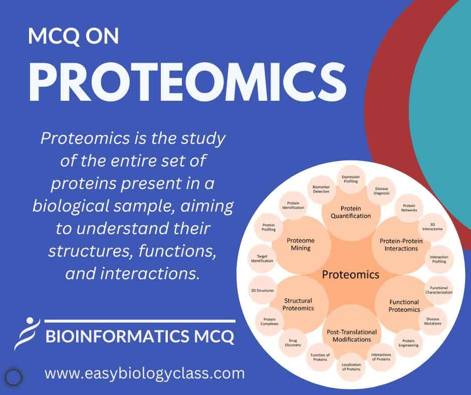 Proteomics is the comprehensive study of proteins within a biological system. It involves the identification, quantification, and functional analysis of proteins to understand their roles in cellular processes, signalling pathways, and disease mechanisms. Proteomics contributes to unravelling the complexity of biological systems at the protein level. This is an MCQ on Proteomics – Concept and Applications.