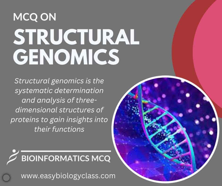 Structural genomics is a field that aims to determine the three-dimensional structures of all possible proteins encoded by a genome. It employs high-throughput methods like X-ray crystallography and NMR spectroscopy to analyze protein structures, aiding in understanding their functions and supporting drug discovery efforts. This is an MCQ on Structural Genomics.